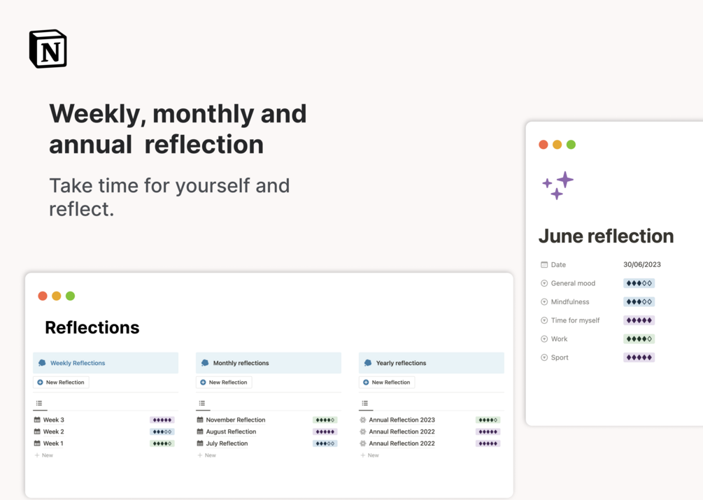 - Answer the monthly and weekly review to stay consistent in your goals.