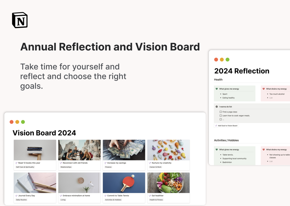 - Use the annual reflection to choose the right goals.